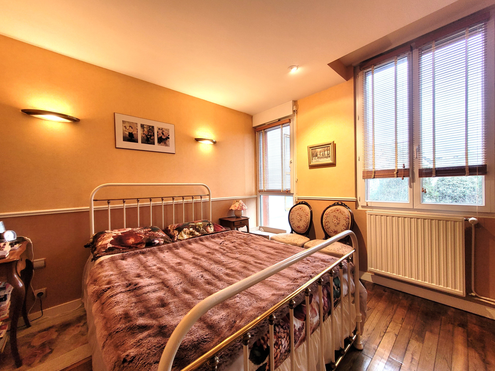 À l'étage, deux chambres spacieuses avec de nombreux rangements.